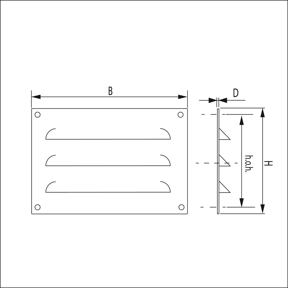 Schoepenrooster (grote schoep) vlakke plaat, opbouw. Blank aluminium, bevestigingsgaten: Ø4mm